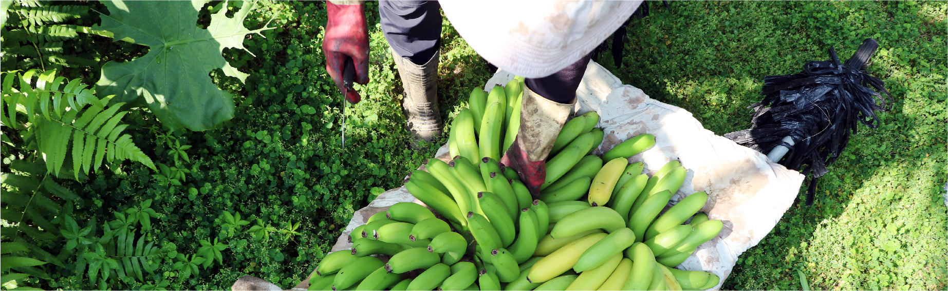 In their modest banana field, they go through the day’s tasks one by one—wrapping the fruit, handling latex, pruning, weeding, and watering.