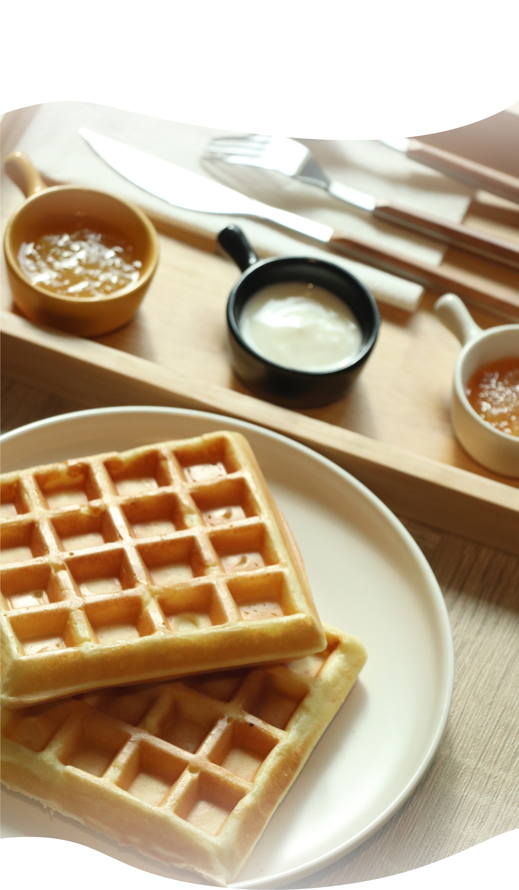 再來一份微暖的鬆餅,搭配優格與果醬