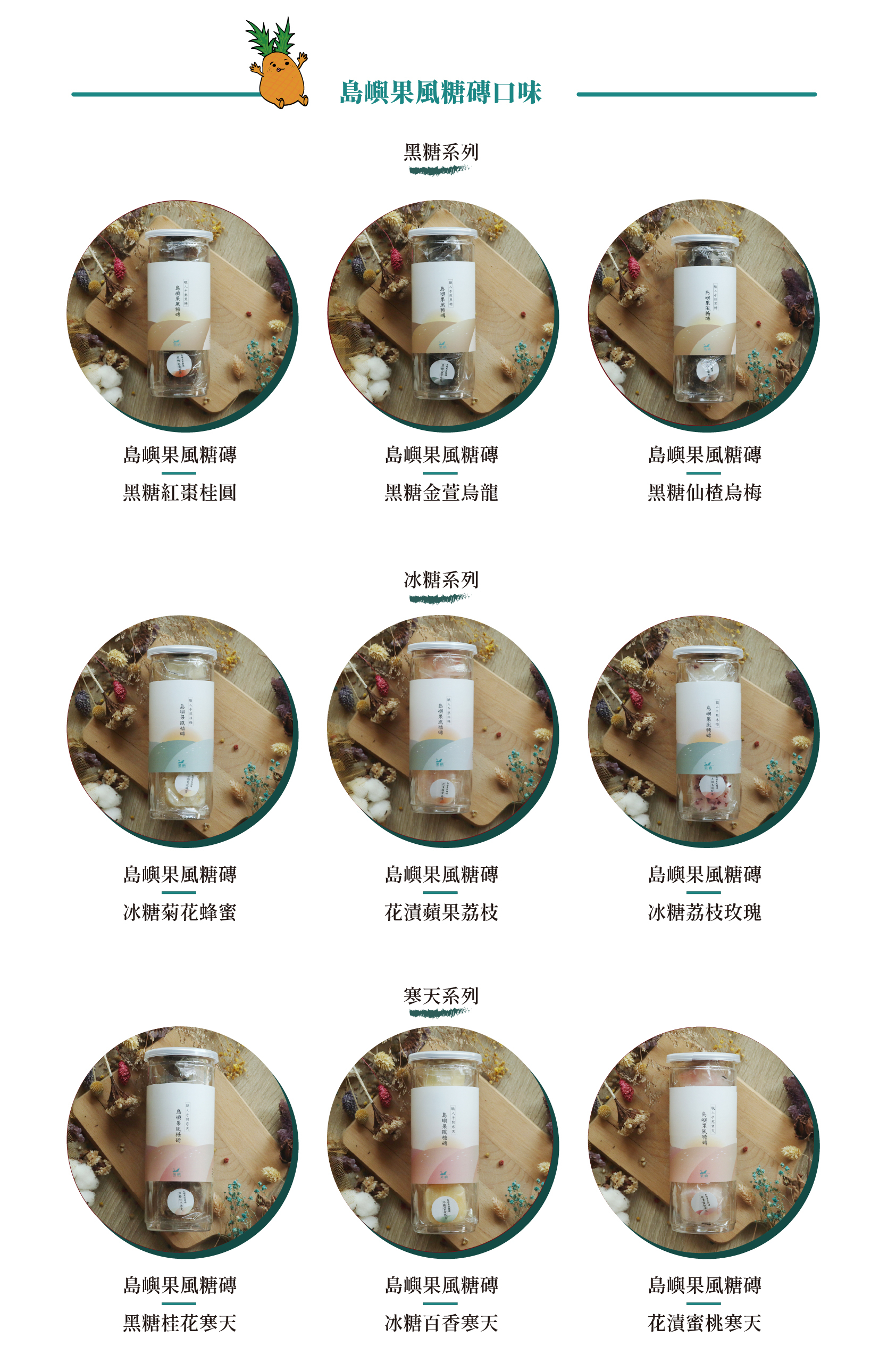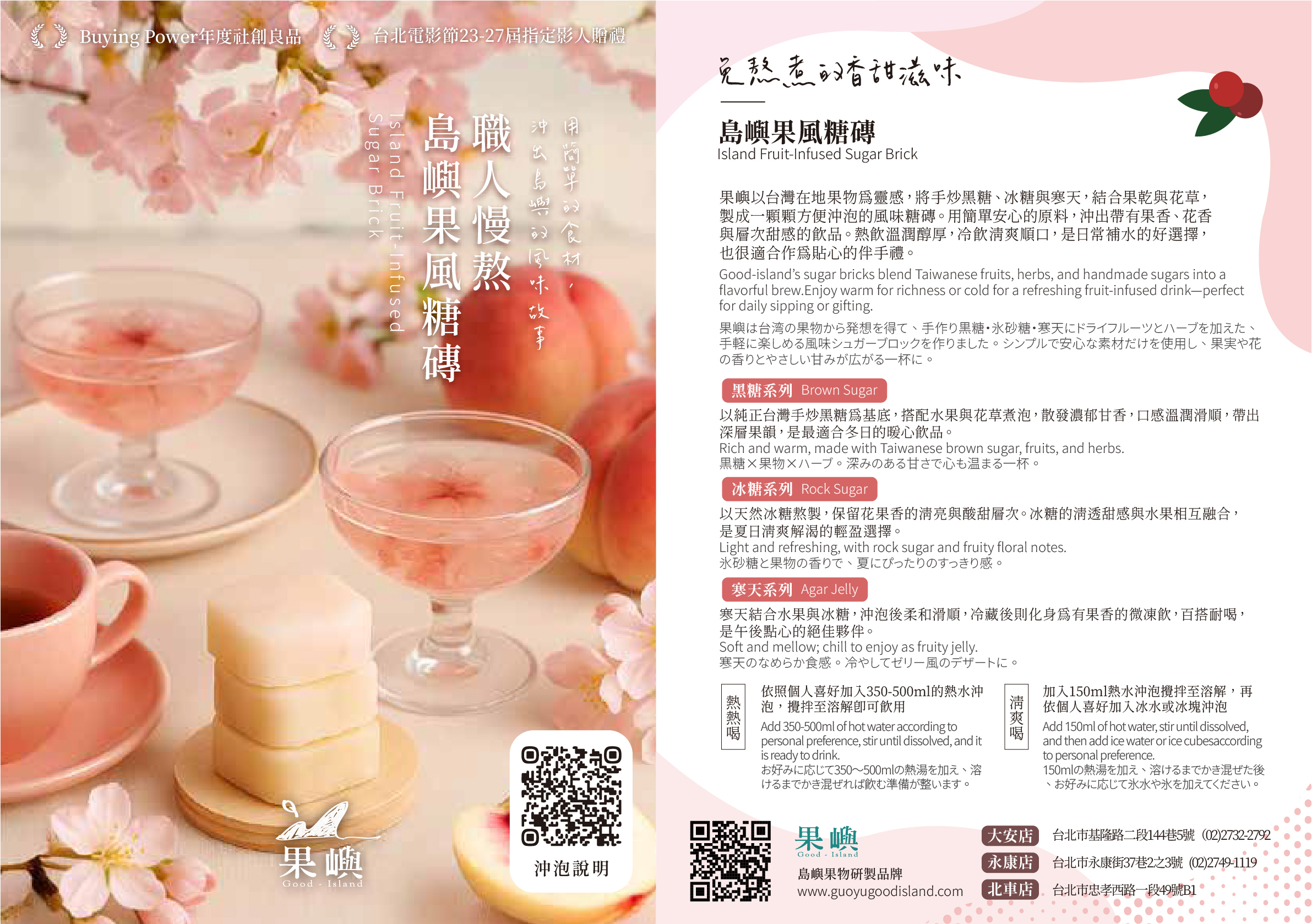 果嶼島嶼果風糖磚全新口味,以台灣手炒黑糖搭配南投金萱烏龍茶,茶香細緻柔和,帶有天然奶香與黑糖的濃郁甜韻,沖泡即享醇厚回甘的風味。