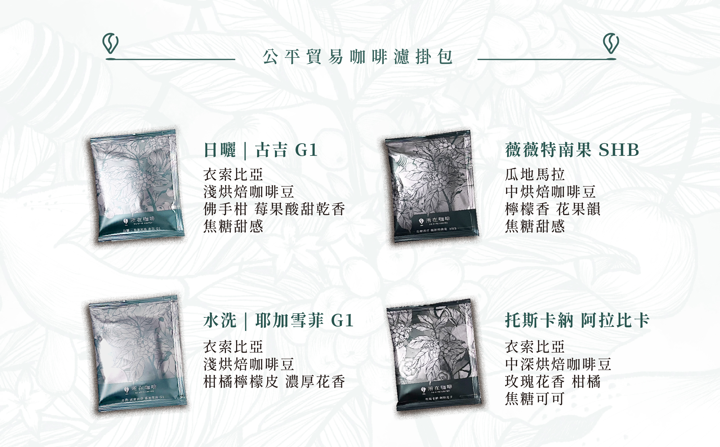 瓜地馬拉薇薇特南果 SHB 濾掛咖啡,來自高海拔種植區,擁有濃郁的可可與堅果香氣,伴隨淡雅柑橘果酸與焦糖甜感。