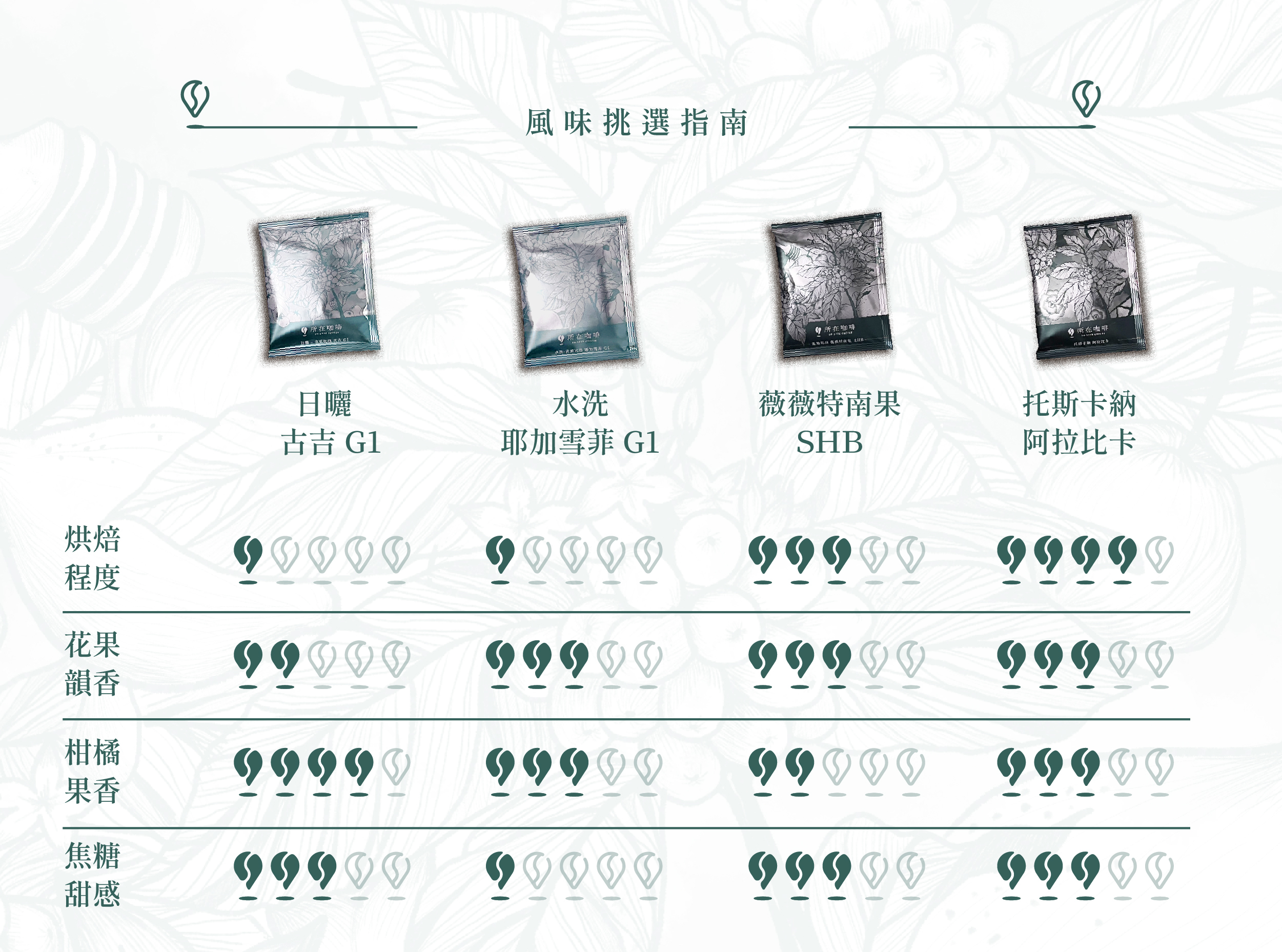 口感厚實圓潤,尾韻乾淨悠長,適合純飲細品,輕鬆沖泡即可享受層次豐富的精品咖啡風味。