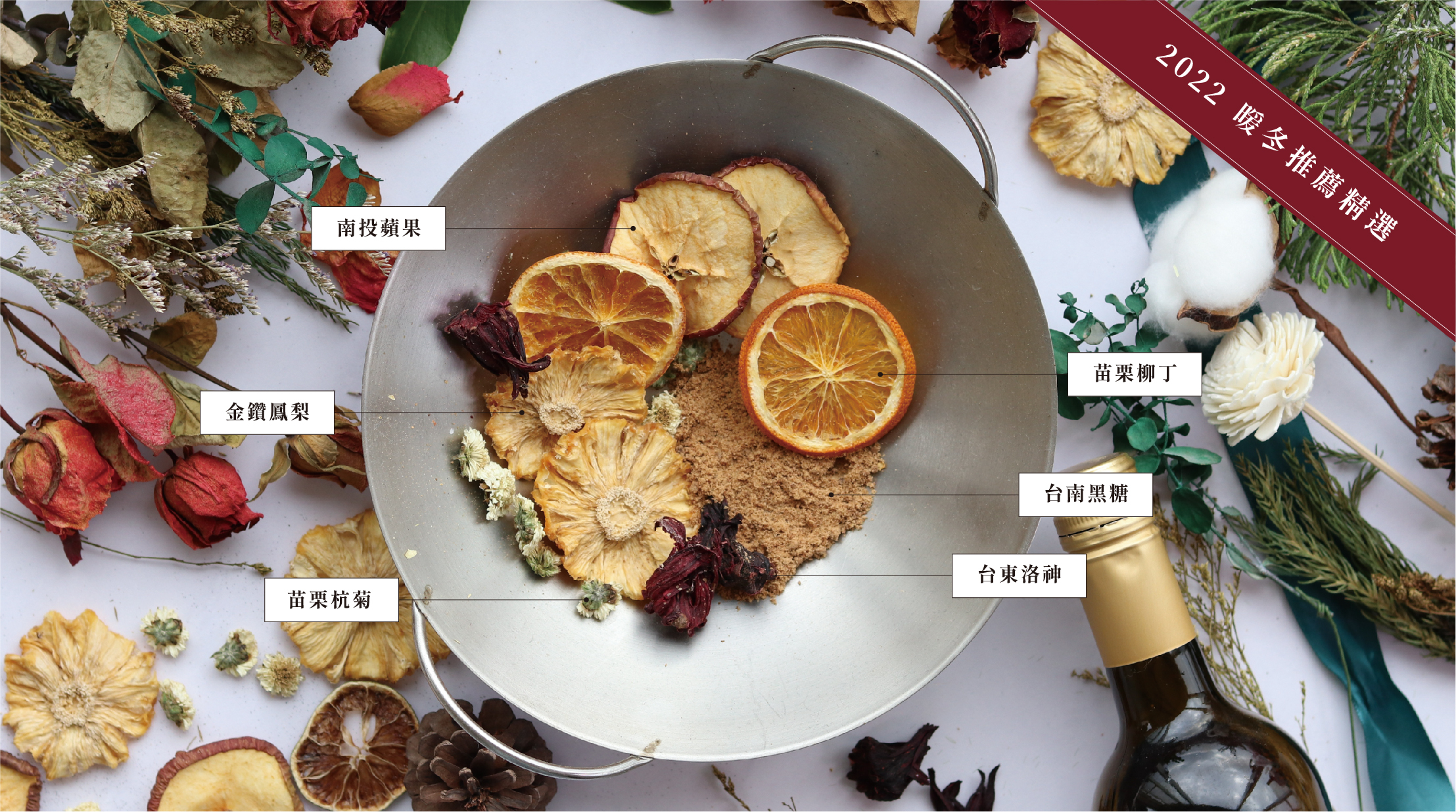 果嶼使用臺灣在地水果與花草作為產品唯一用料,搭配味香甘甜的台灣蔗香黑糖,推出在冬天也能溫暖人心的鍋煮紅酒香料包,無論是家庭聚會、節慶派對、露營野炊、伴侶陪伴,都是營造氣氛不可或缺的最佳微醺飲品,更是交換禮物中最別具新意的暖心選擇呦。