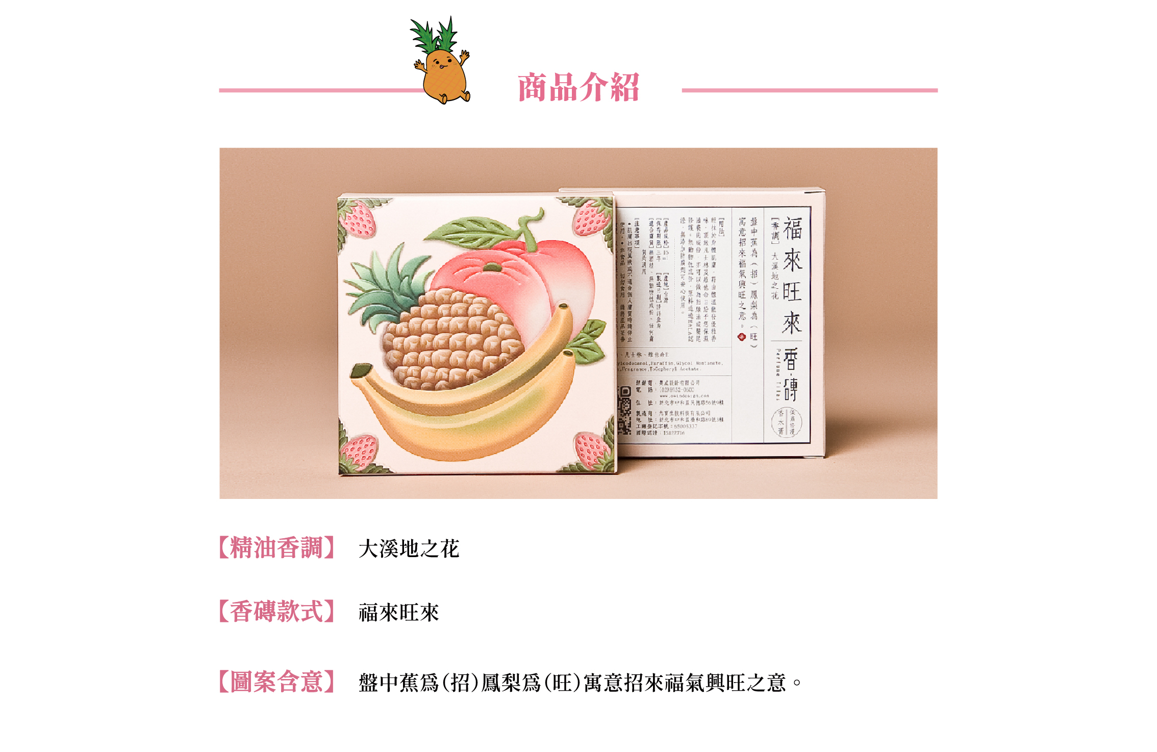 【圖案含意】盤中蕉為(招)鳳梨為(旺)寓意招來福氣興旺