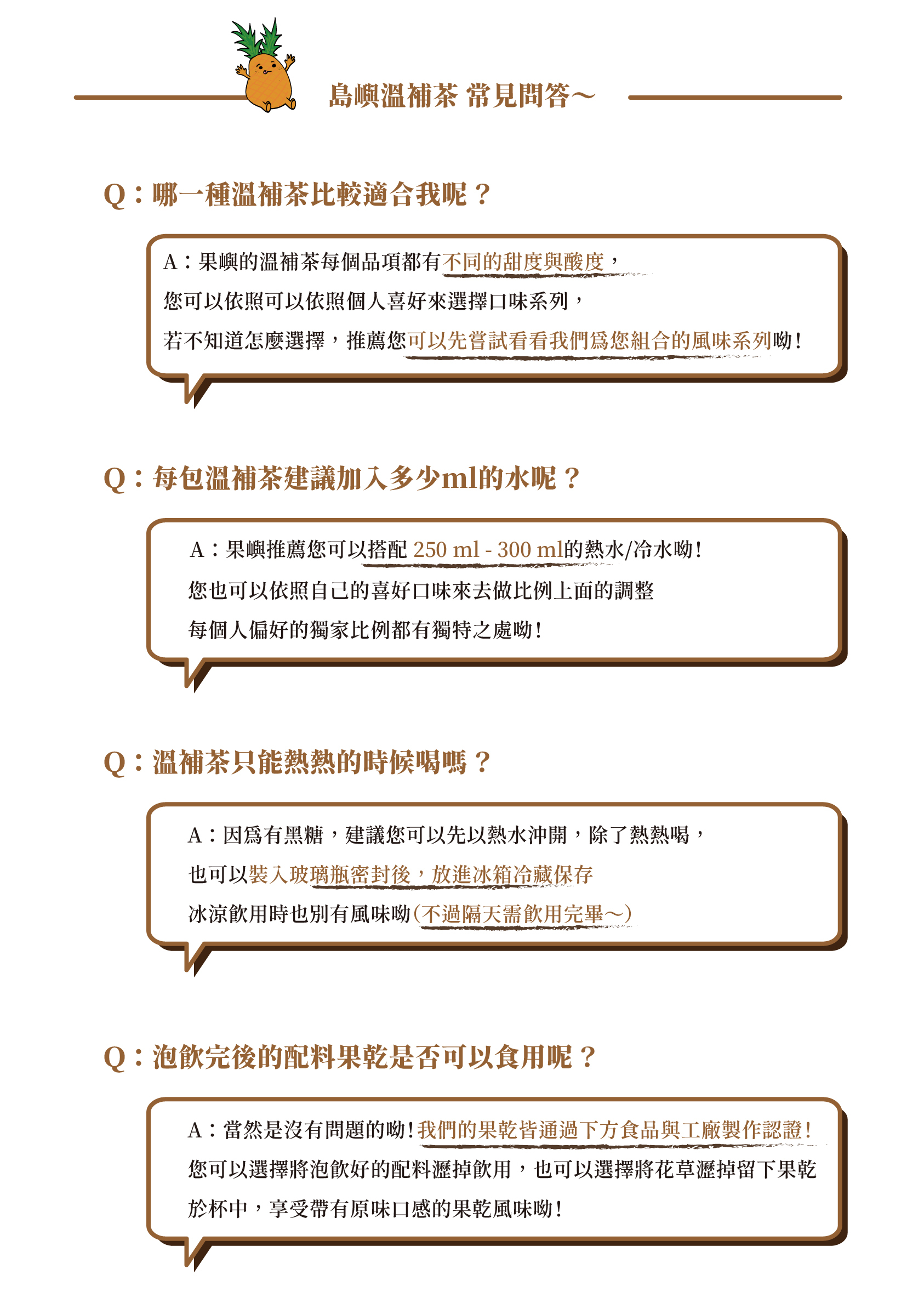 【果嶼黑糖養生溫補茶】溫和爽口,舒活元氣,紓緩退火。